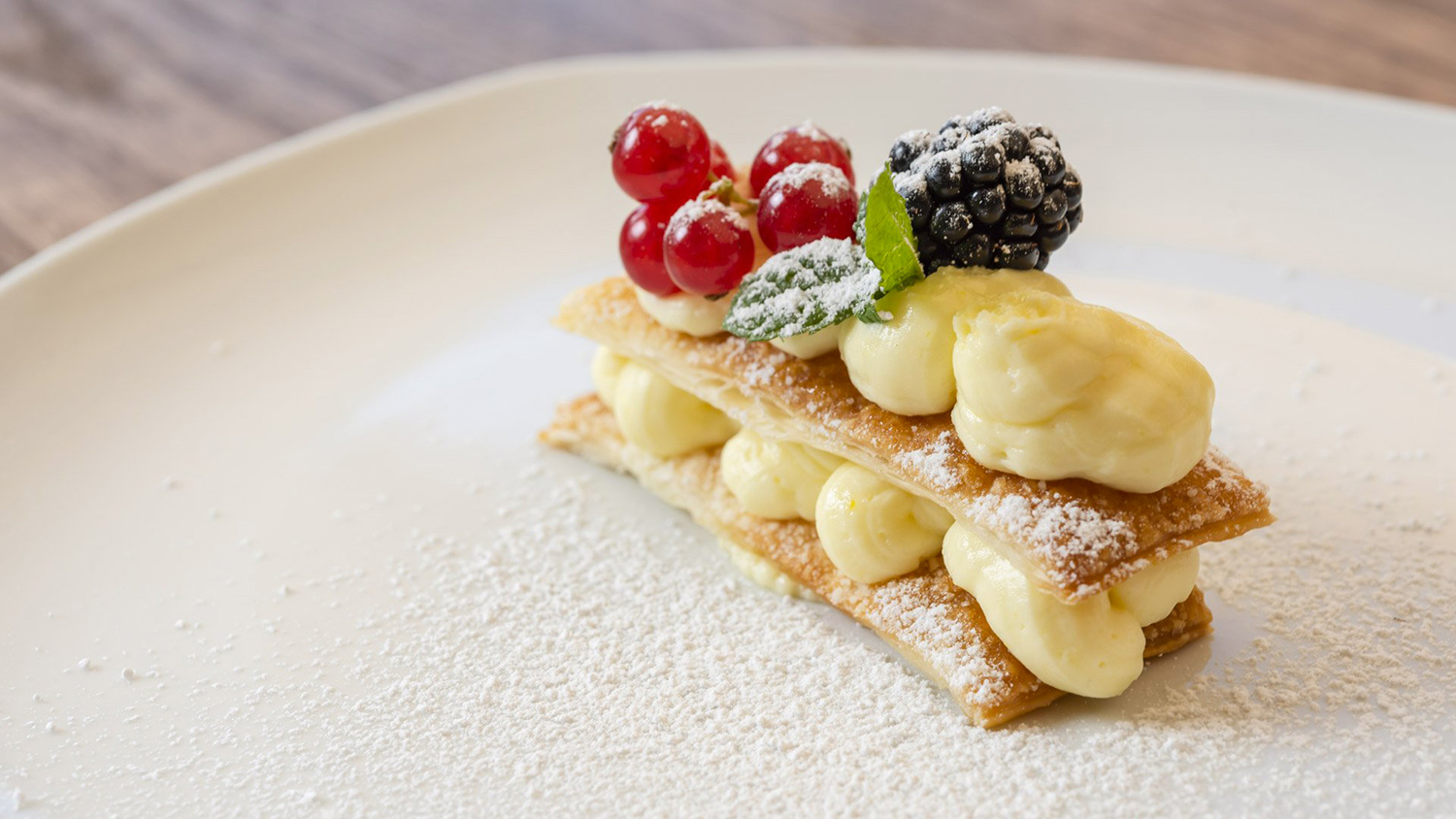 The menu offers fresh and seasonal dishes, prepared with local ingredients, from appetizer to dessert, to satisfy every taste.