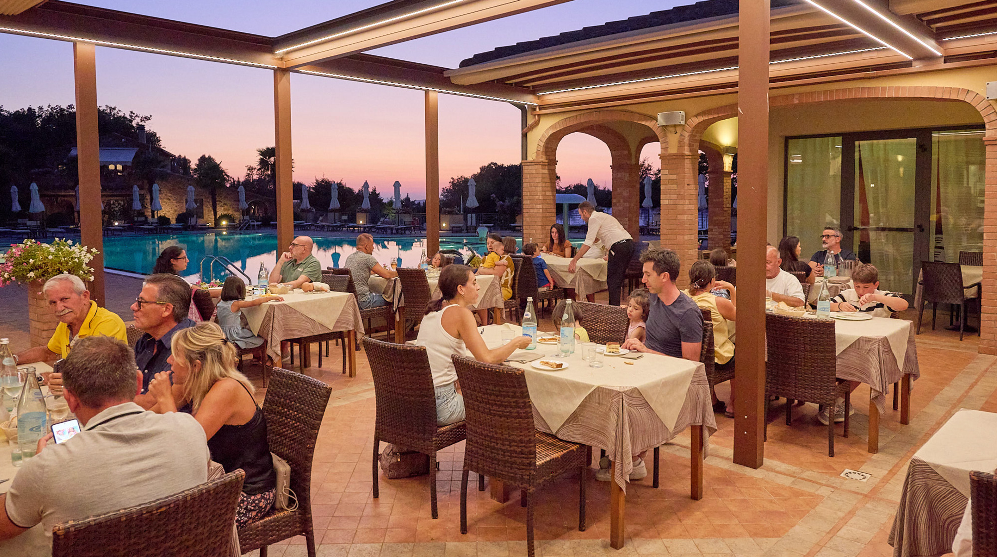 The poolside restaurant, with panoramic views of the village and the nature of Maremma, is the ideal place for lunch break.