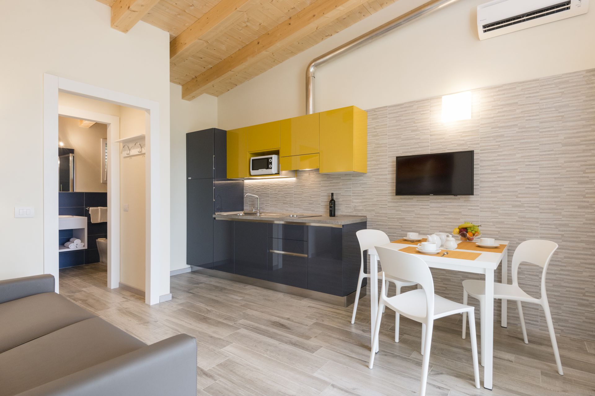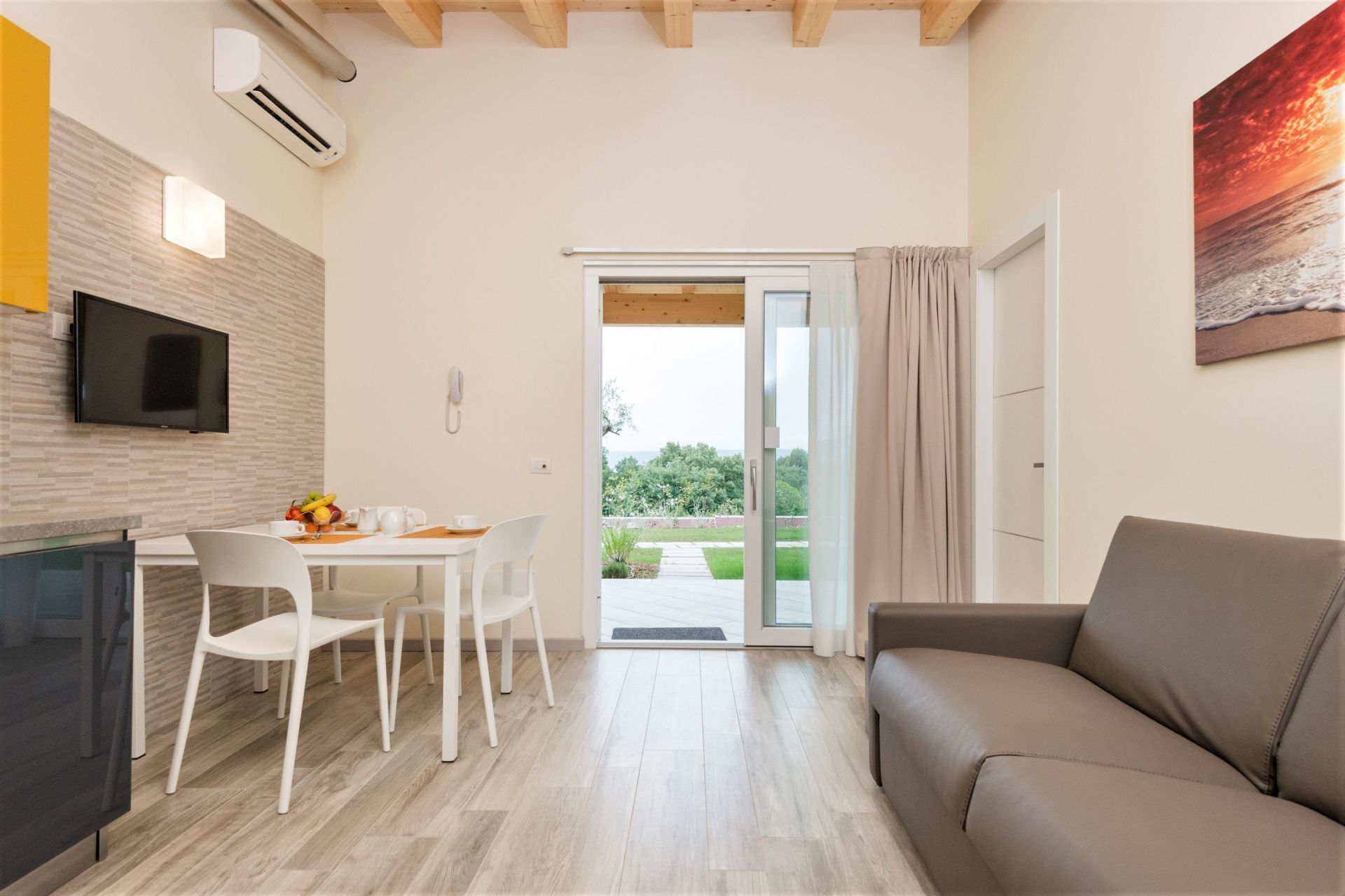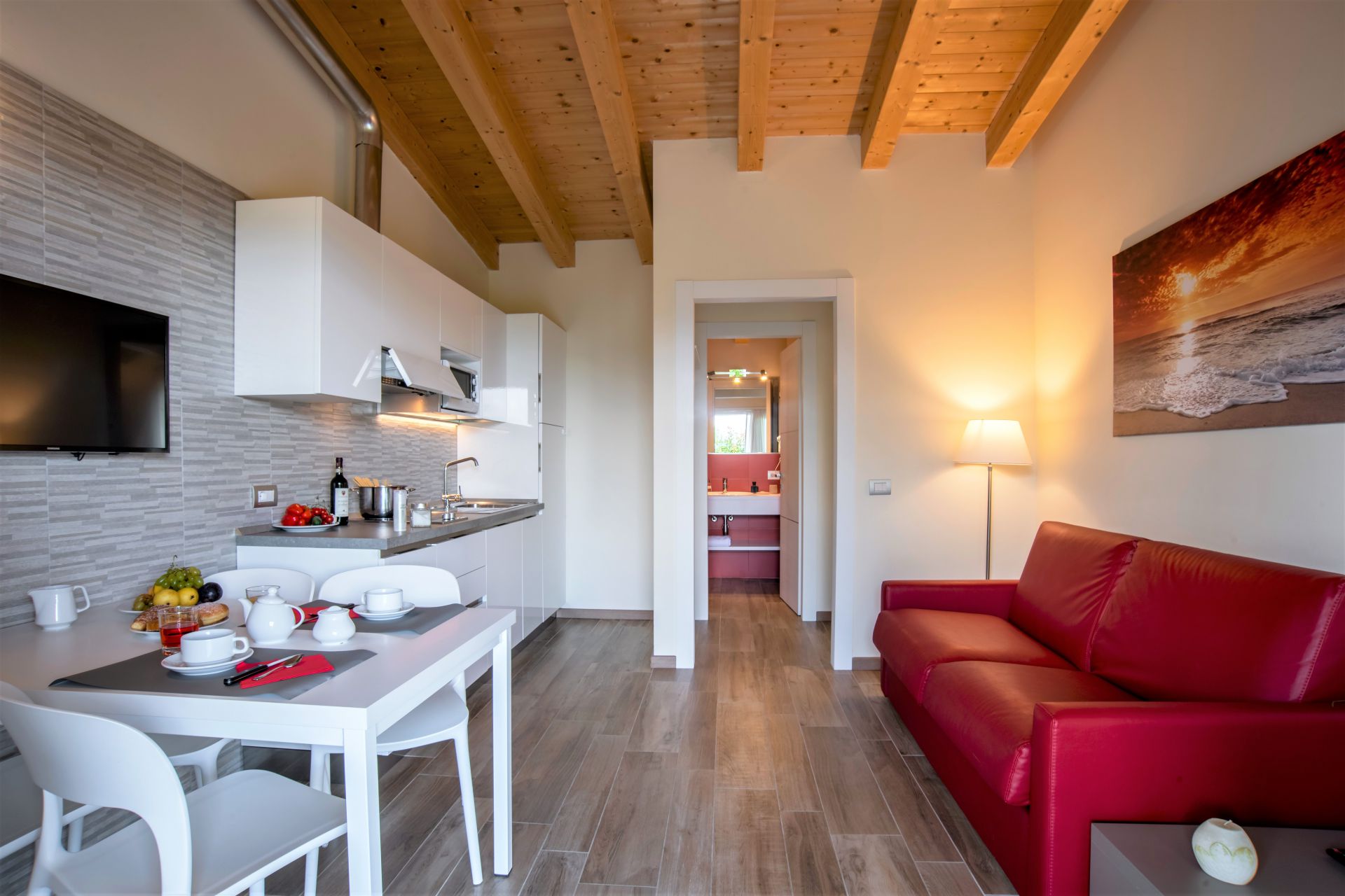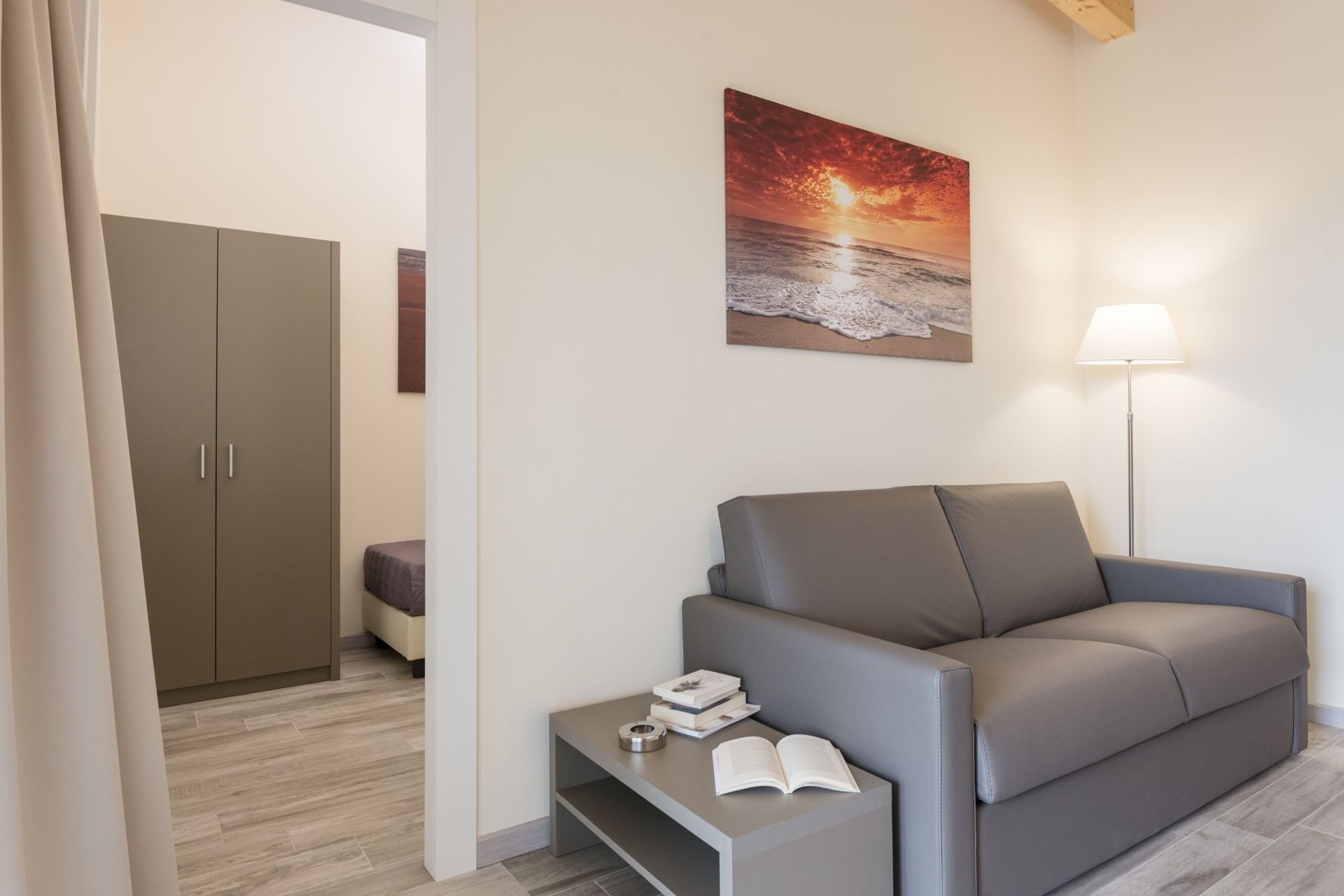 Environ 48 m2 avec une chambre double, une chambre avec deux lits simples, salon avec canapé-lit double, kitchenette (entièrement équipée), salle de bains avec douche, toilettes, bidet, porche meublé avec jardin à usage exclusif.