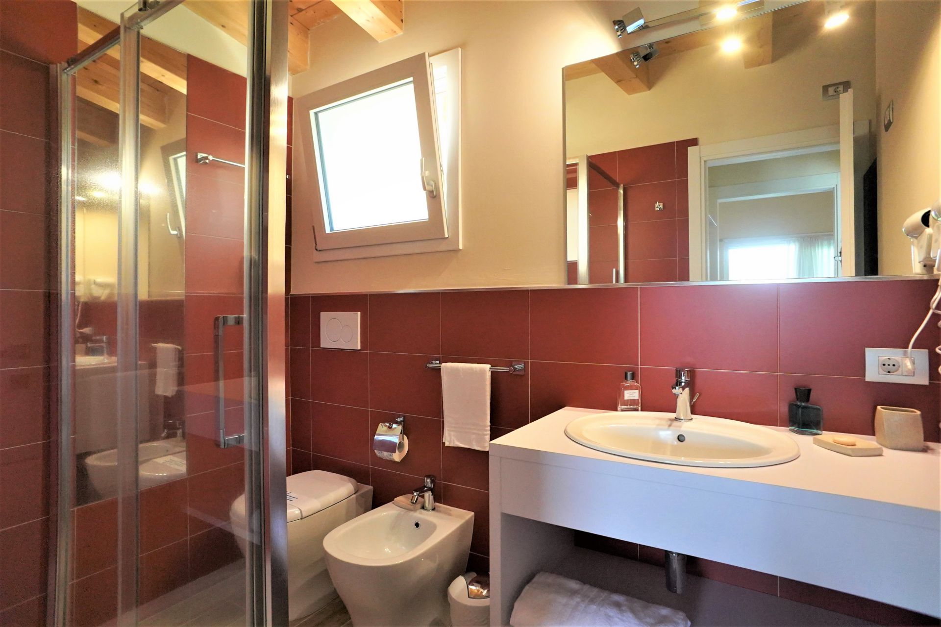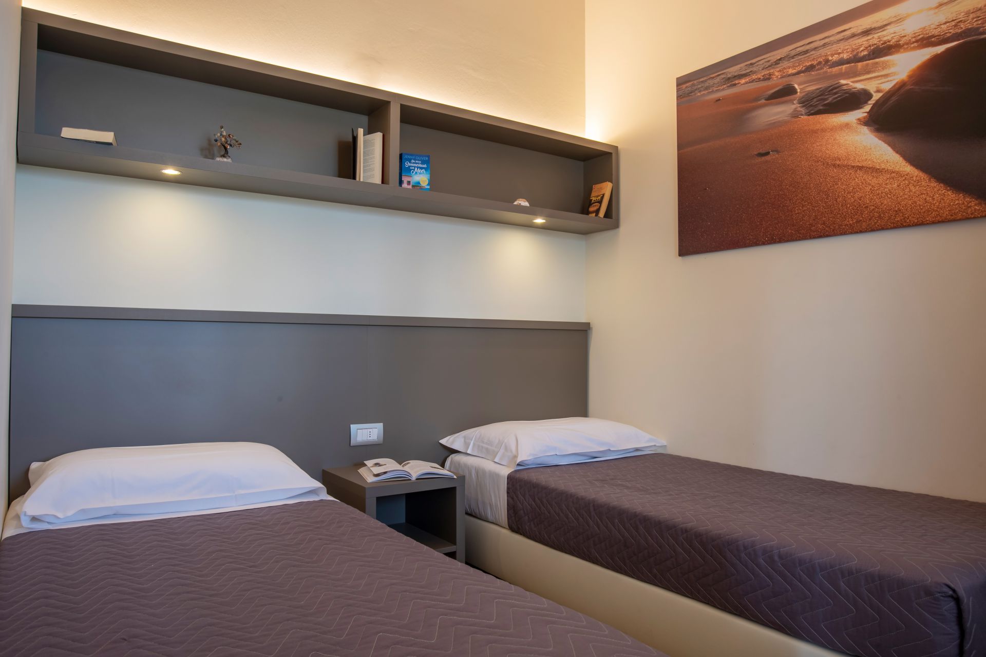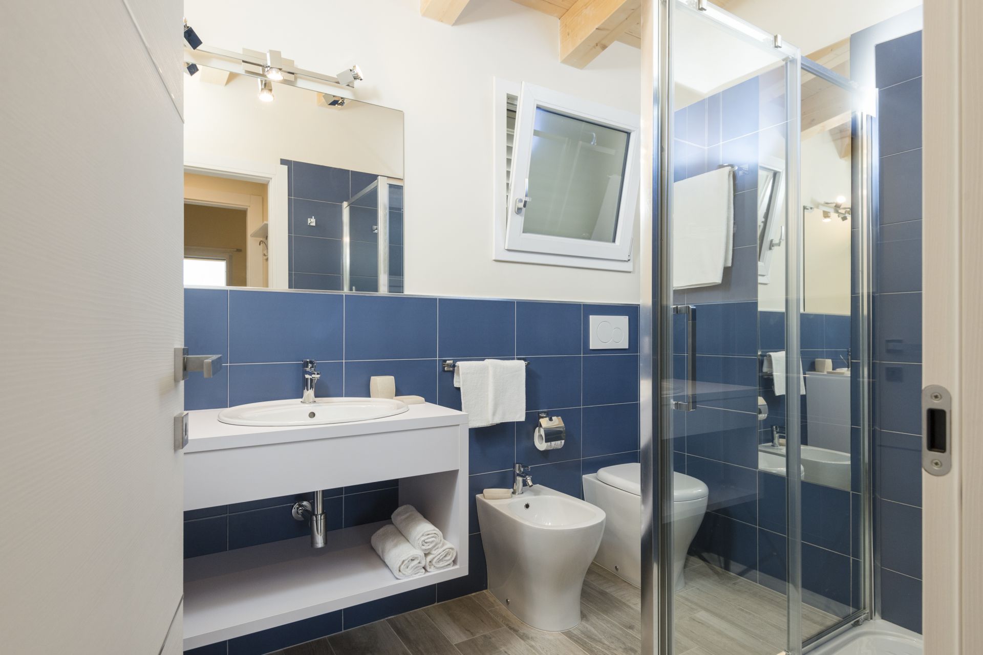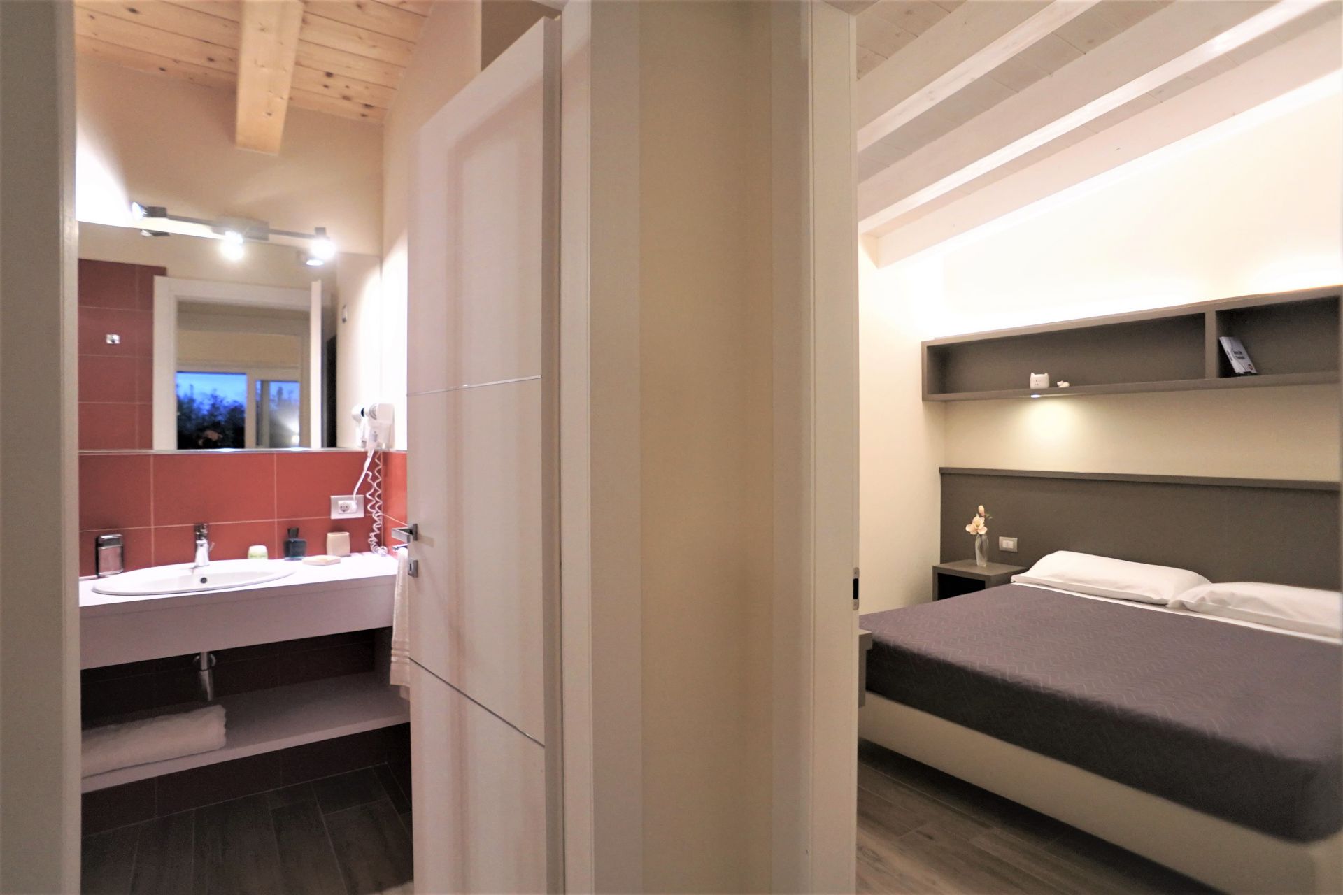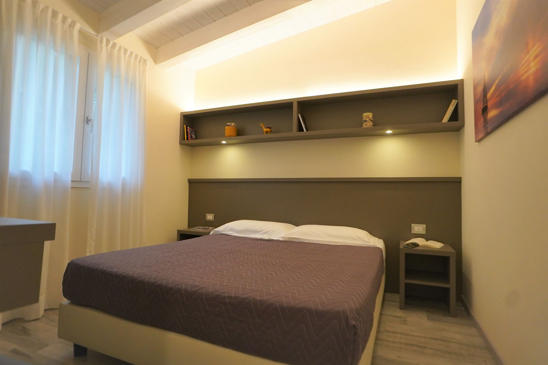 Environ 48 m2 avec une chambre double, une chambre avec deux lits simples, salon avec canapé-lit double, kitchenette (entièrement équipée), salle de bains avec douche, toilettes, bidet, porche meublé avec jardin à usage exclusif.