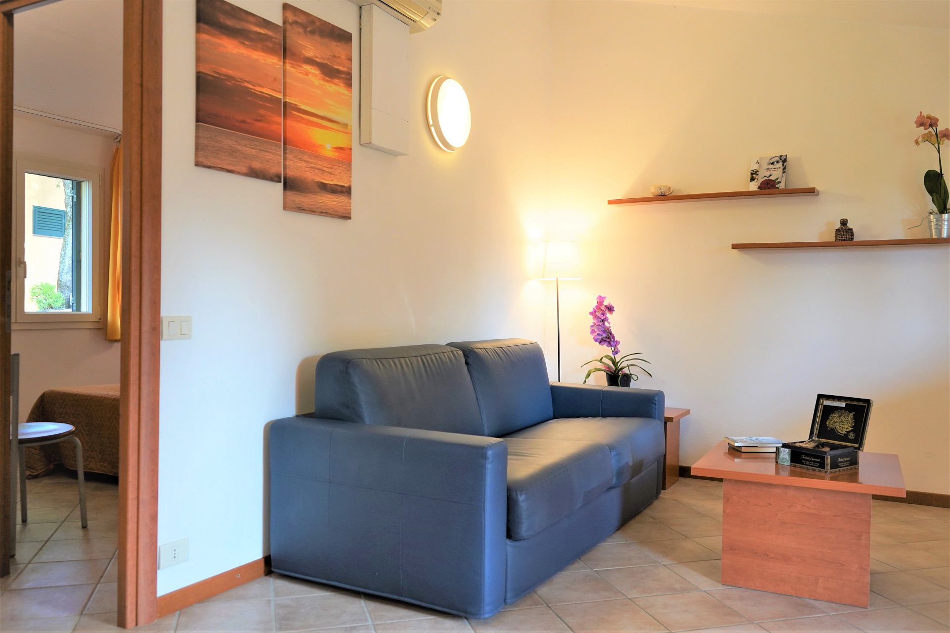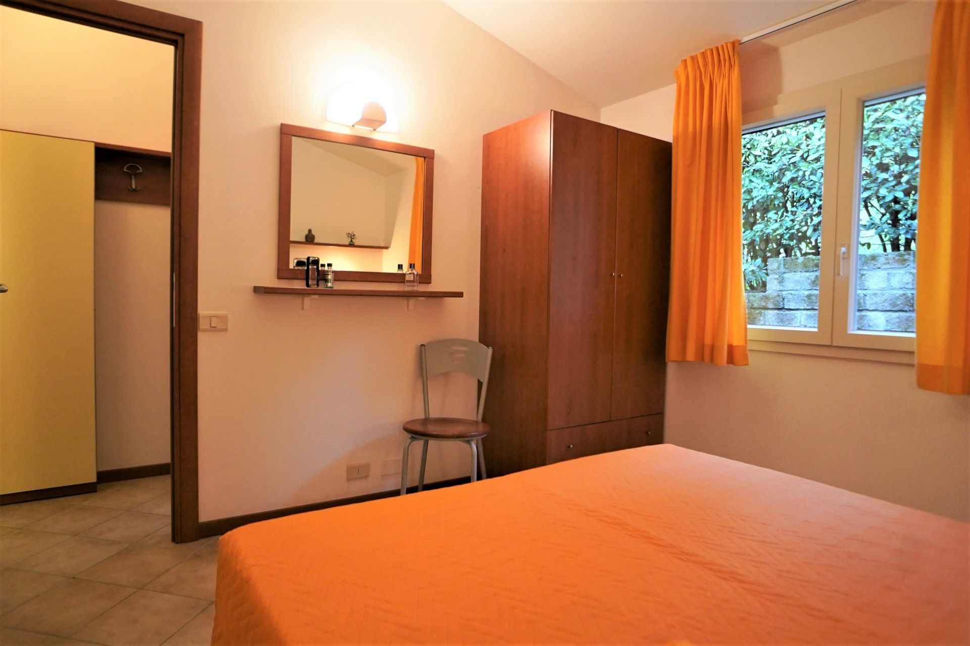 Un cottage de 40 m2 avec une chambre double, un salon avec canapé-lit double, une kitchenette (entièrement équipée), une salle de bains avec douche, des toilettes, un bidet, un porche meublé avec un jardin à usage exclusif.