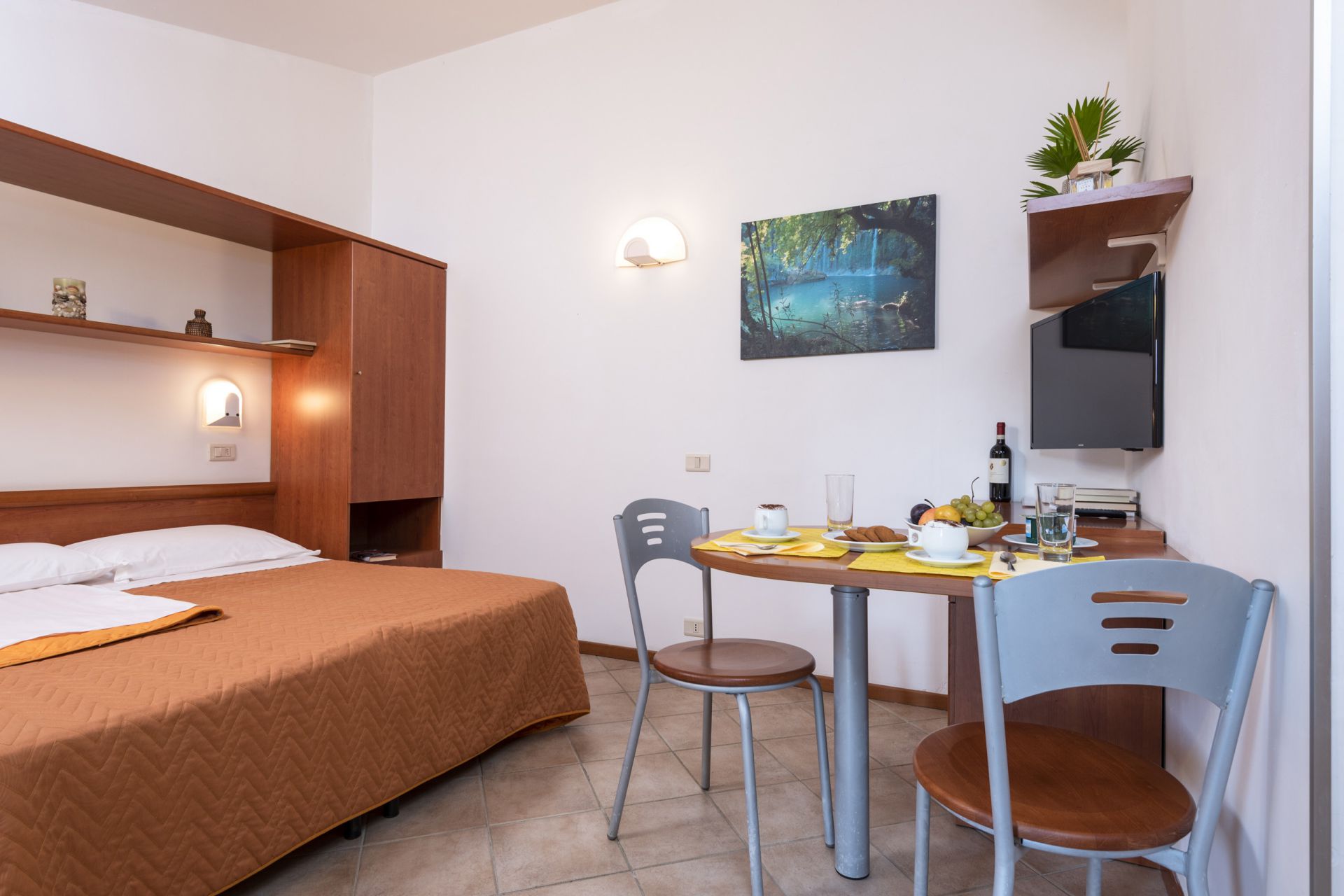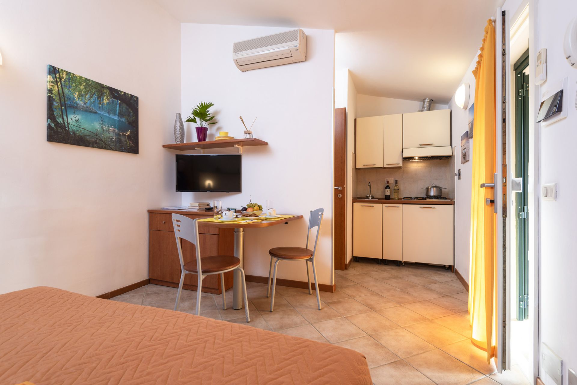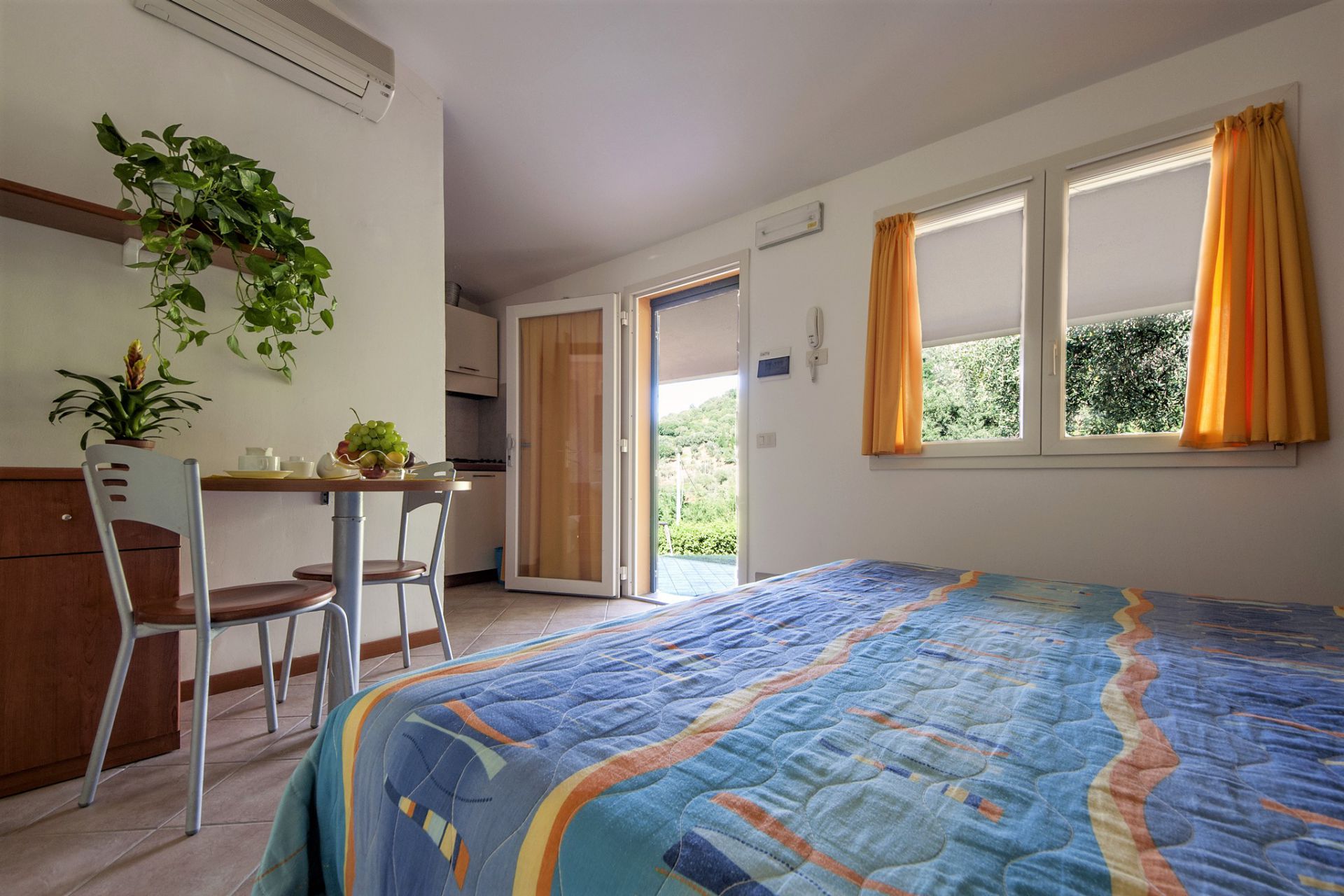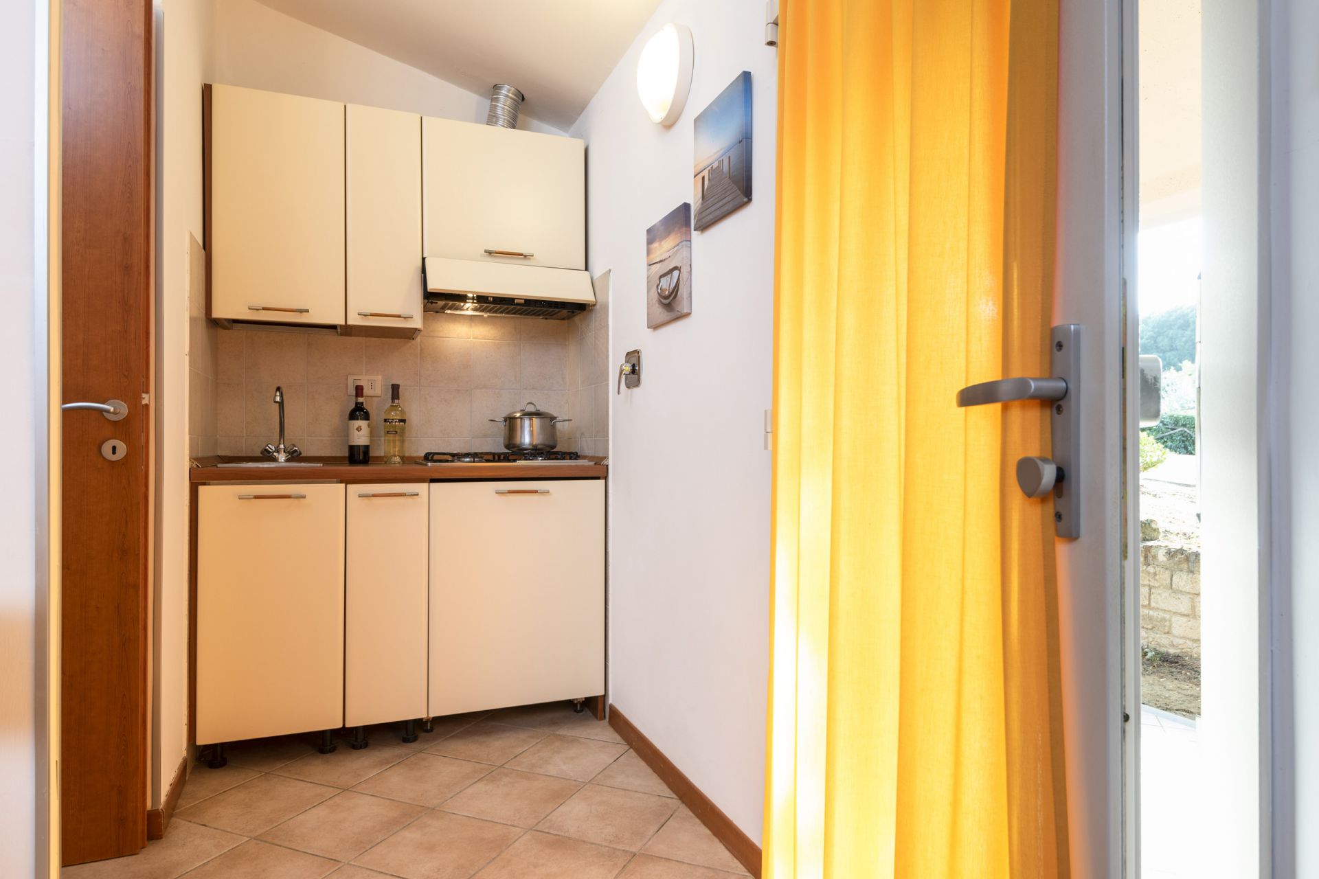 Petite villa d’environ 20 m2 composée d’un salon avec lit double, d’une kitchenette (entièrement équipée), d’une salle de bain avec douche, toilettes, bidet, d’un porche meublé avec jardin à usage exclusif.